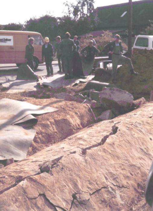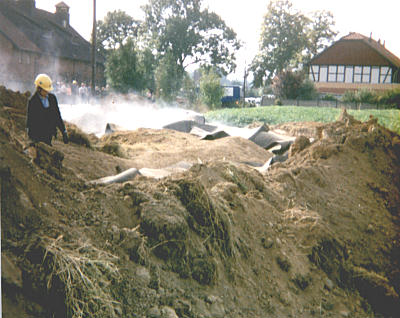 Der 1980 freigelegte und dann gesprengte Bunker in Dungelbeck auf dem heutigen Blumenfeld des Landwirtes Behrens. Foto: Otto Peyers |