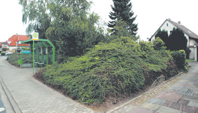 Hinter dem begrünten Hügel an der Dungelbecker Haltestelle „Am Festanger“ liegt der zugeschüttete Luftschutzbunker. Christian Bierwagen |